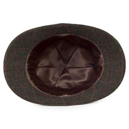 Here is Denton' take on the traditional Sherlock Hat. This olive hat is made of 100% wool, has satin lining and a fetching windowpane pattern. This style is favored for its country practicality as well as its high fashion qualities.