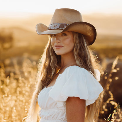 Dorfman Pacific Hats Chet Matte Toyo Straw Western Cowboy Hat - Whisky