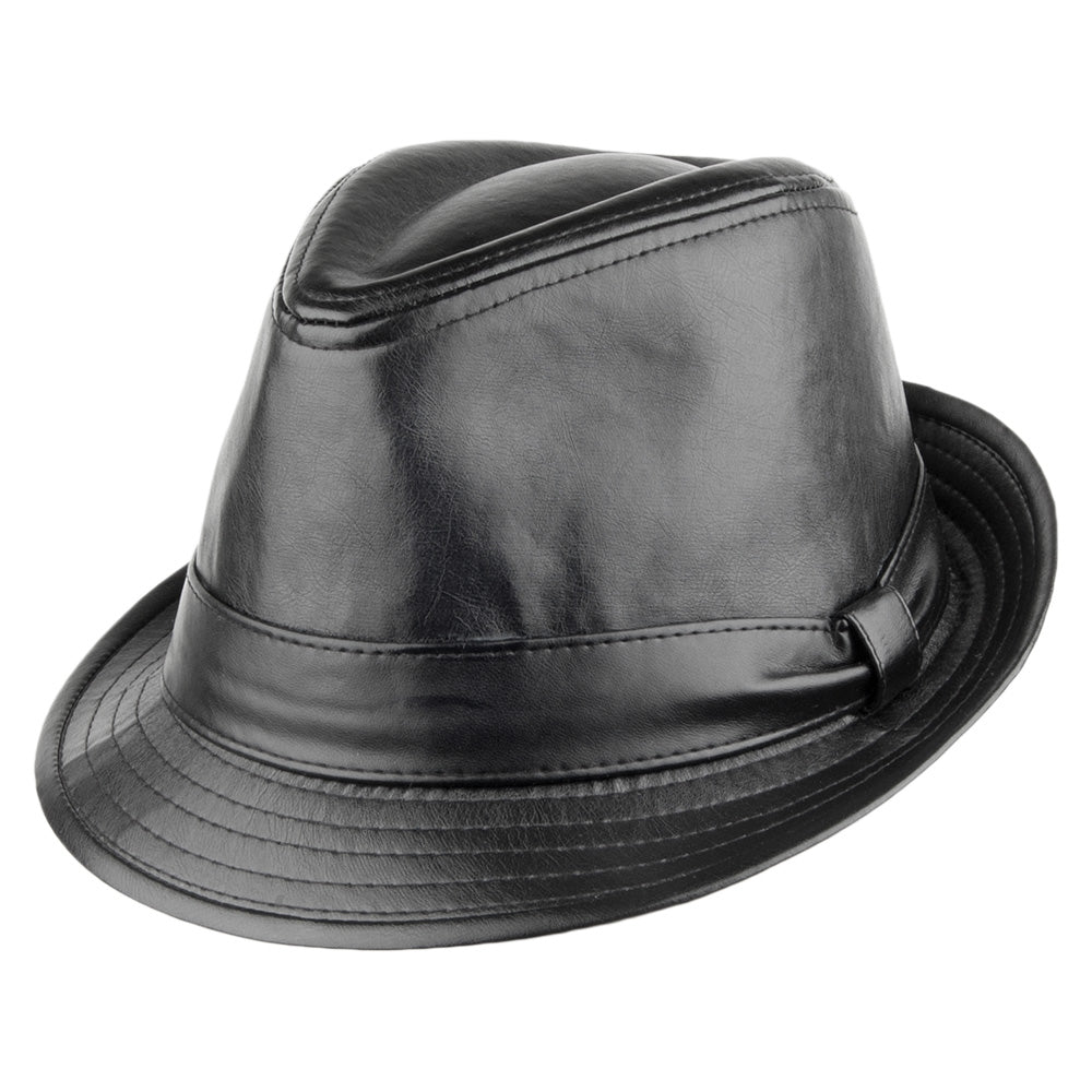 The Dorfman-Pacific Faux Leather II Trilby Hat in black is a great looking style. Made from 100% vinyl, this hat is fully lined and has a 3.5cm wide brim. Lining and a cotton sweatband inside the trilby ensures it feels comfortable on your head.