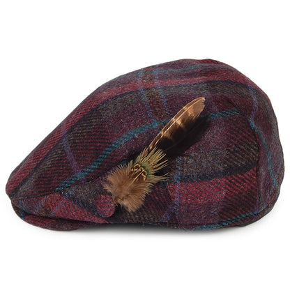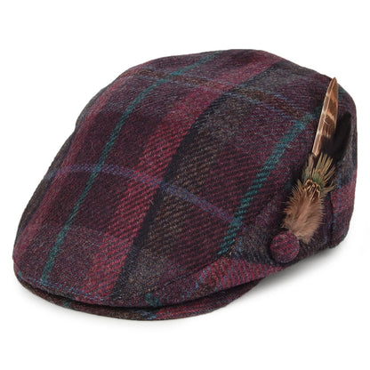 Failsworth Hats British Wool Tartan Feather Flat Cap - Purple-Blue