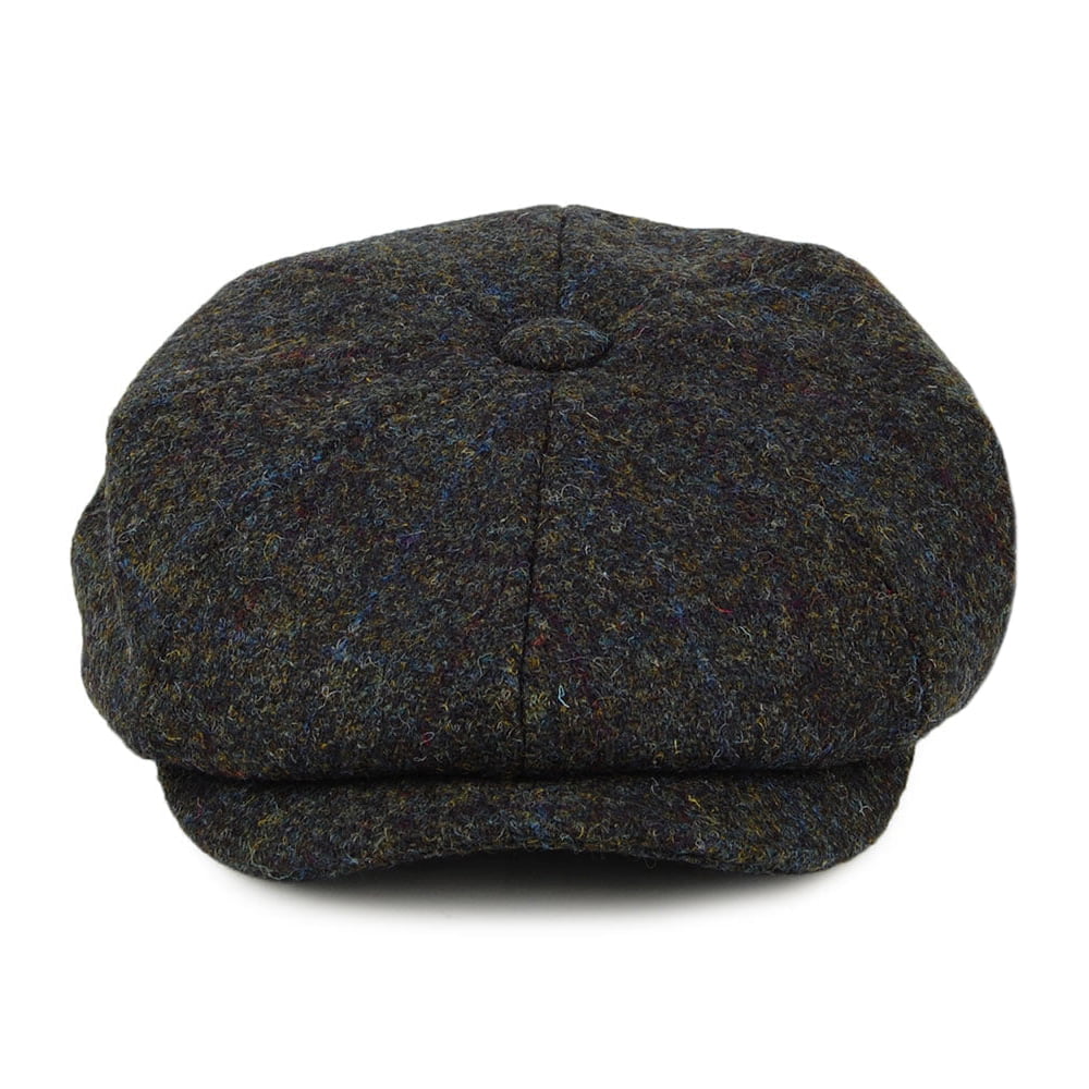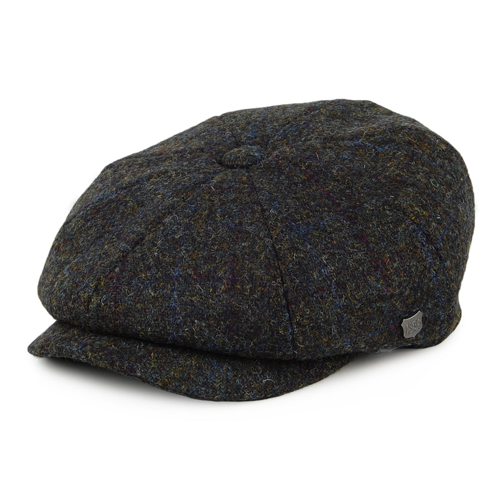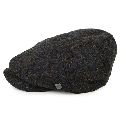 Failsworth Hats Carloway Windowpane HARRIS TWEED Newsboy Cap - Moss-Blue