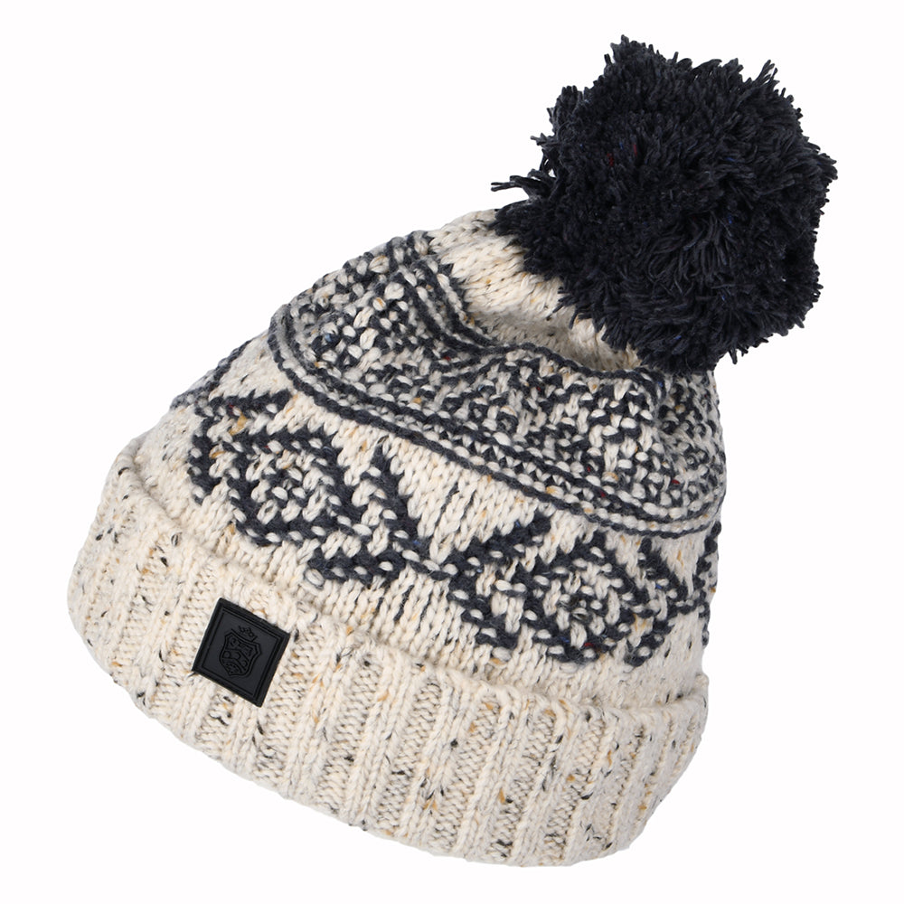 Failsworth Hats Fair Isle Bobble Hat - Oatmeal-Navy