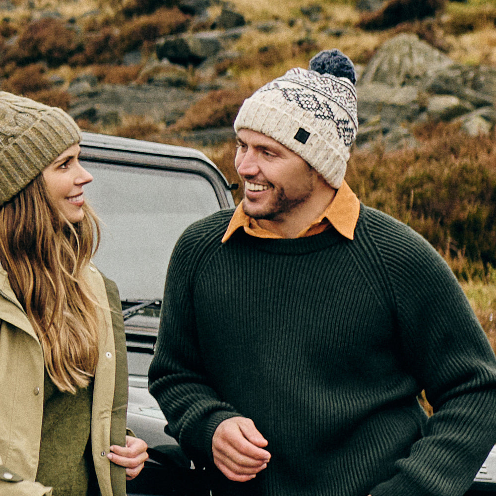 Failsworth have made a fantastic winter style with this Fair Isle Bobble Hat in a oatmeal-navy colour. The hat features a Failsworth patch sewn to the cuff of the hat and a Fair Isle pattern on the crown. There is a large bobble at the top to finish of this great winter hat.