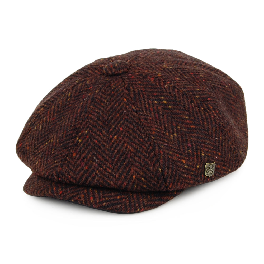 Failsworth Hats Malmo Donegal Tweed Herringbone Newsboy Cap - Burgundy-Multi