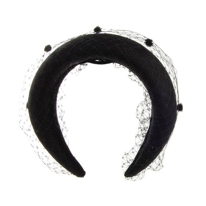 Failsworth Rosalind Occasion Headband in black. The headband is a new unique style made of a straw and has a veil for added decoration. A great look for a formal occasion