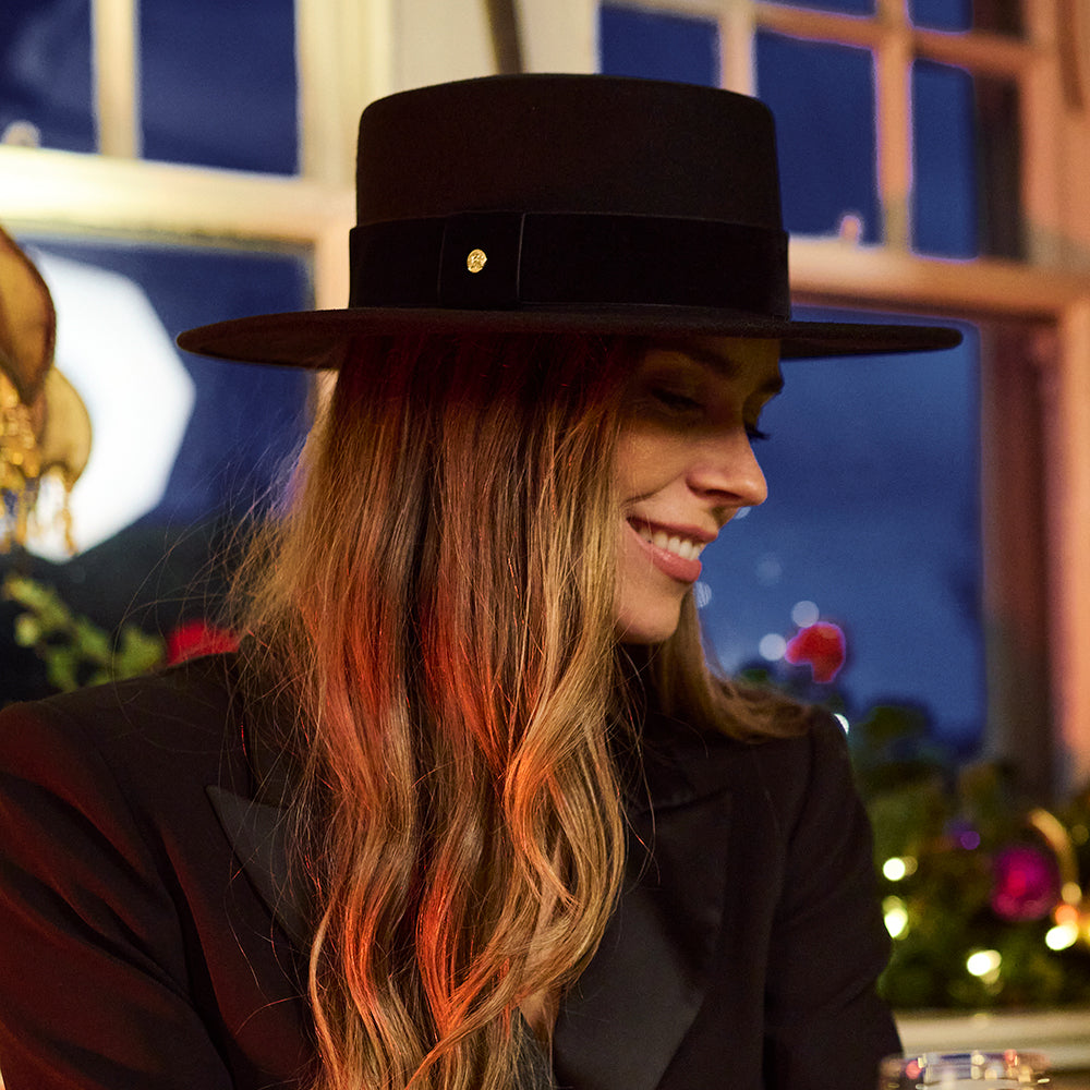 Failsworth Hats Showerproof Wool Felt Boater Hat With Velvet Band - Black
