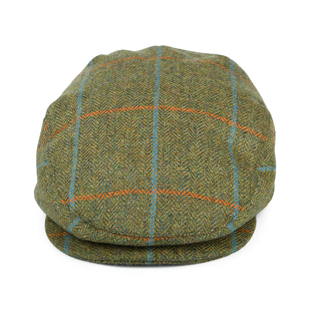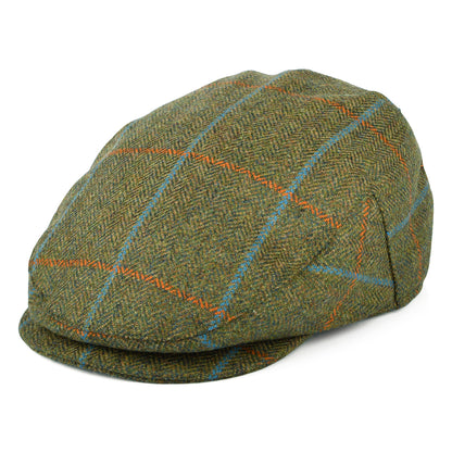 Failsworth Hats Windowpane Herringbone Waterproof Flat Cap - Moss-Orange-Blue
