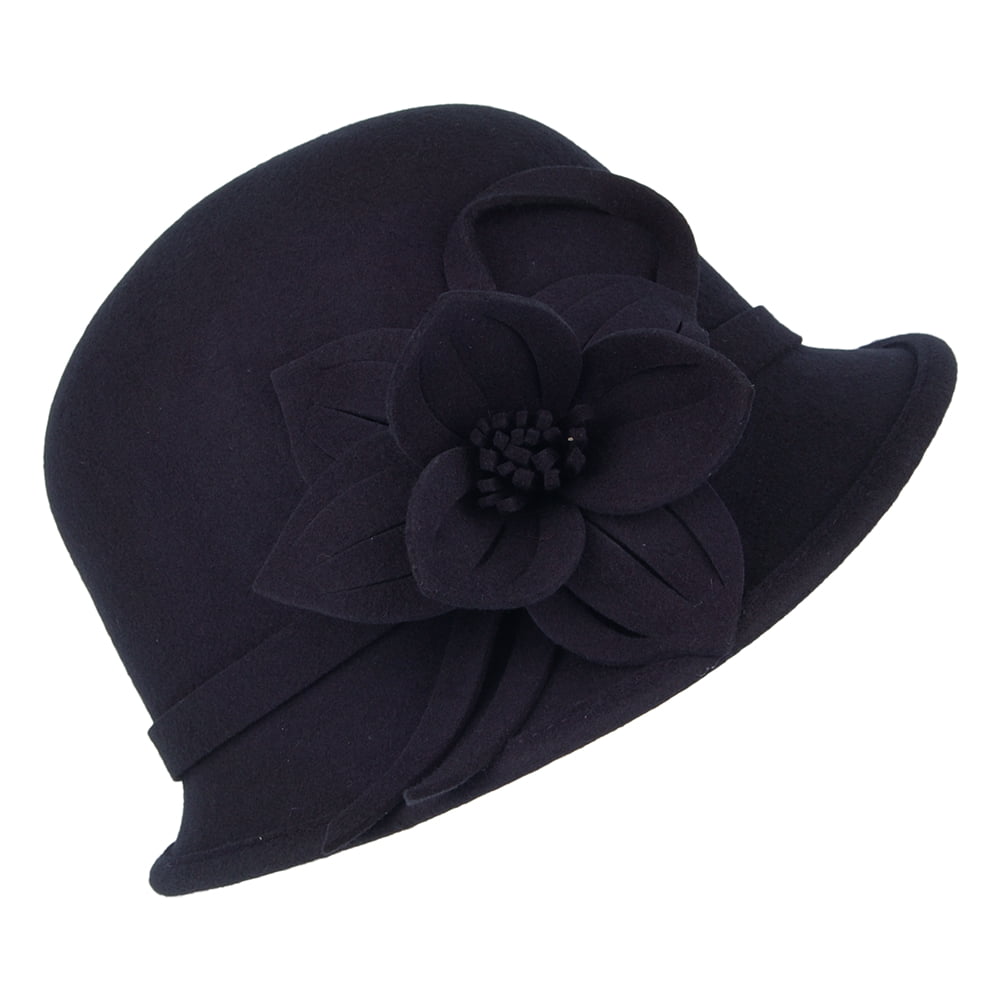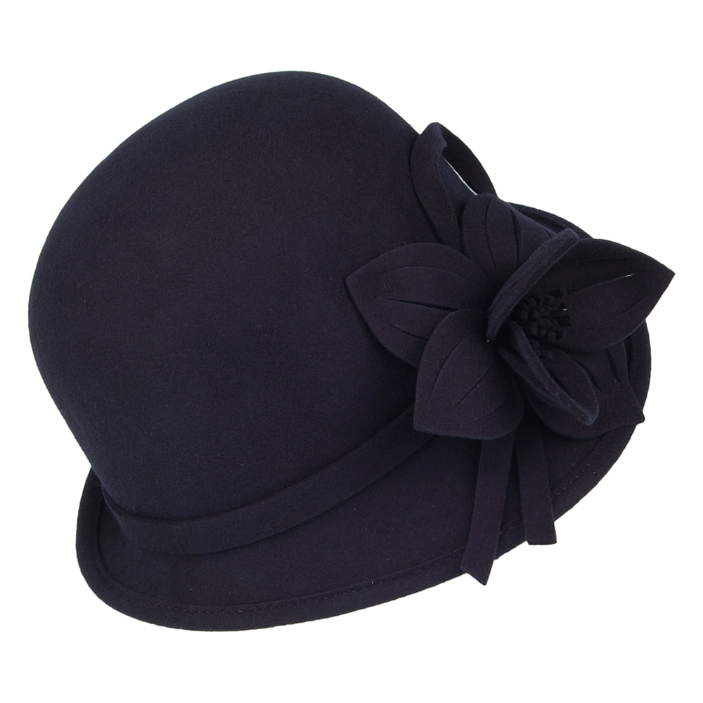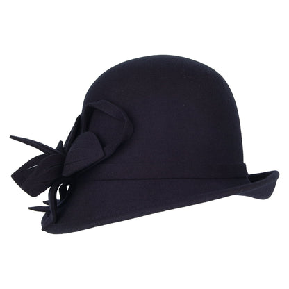 Failsworth Hats Wool Felt Flower Cloche - Navy Blue