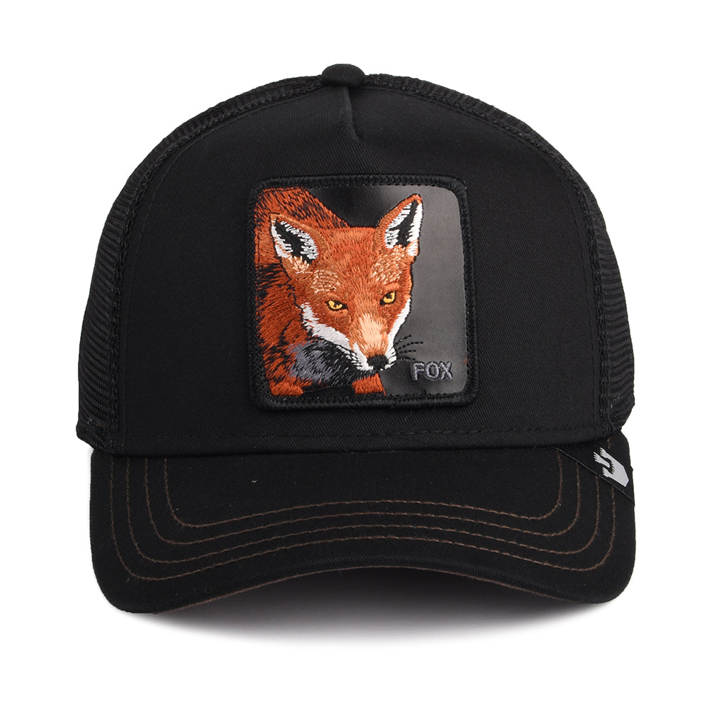 Proudly display your spirit animal with the Goorin Bros. Fox Trucker Cap in black. This baseball cap features a mesh back and and an adjustable snapback for easy sizing. An embroidered Goorin label is sewn to the side of the brim and a unique patch is sewn on the structured front panel.