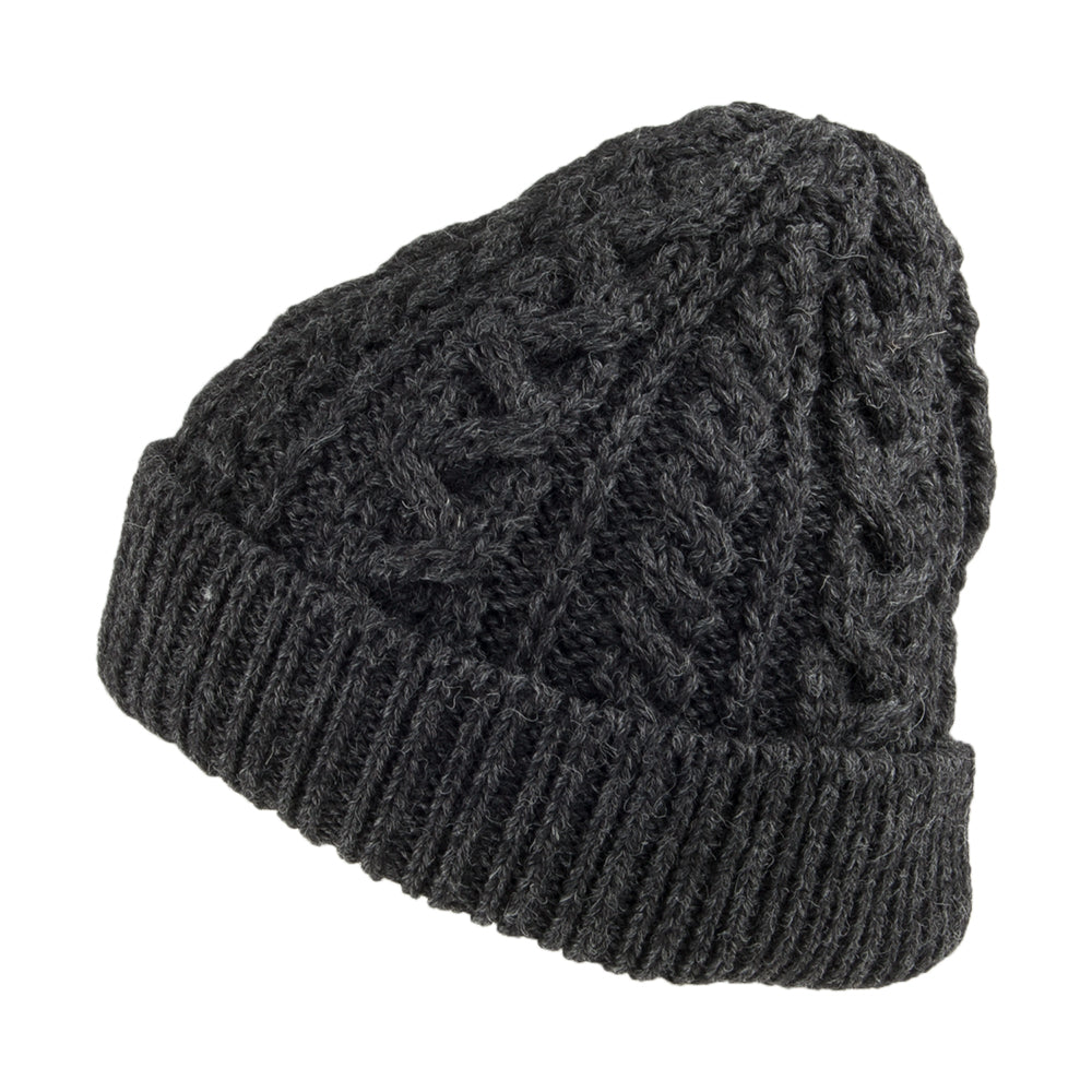 Highland 2000 Cuffed Cable Knit English Wool Beanie Hat - Charcoal
