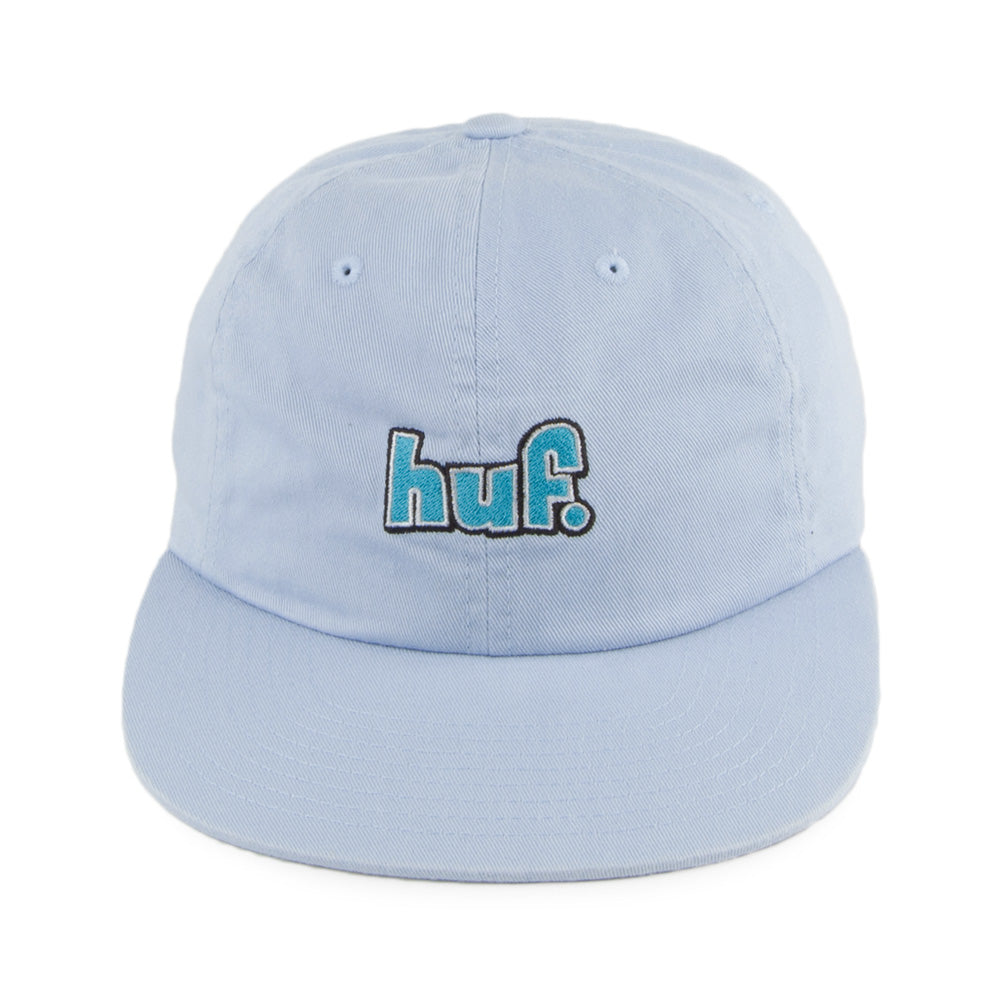 The 1993 6 Panel Baseball Cap in blue is a fun play on a classic design. This unstructured ball cap, has a flat brim and an adjustable strapback for a relaxed fit and look. It features 1993 HUF embroidery on the front of the crown and is finished with a HUF flip tag at the rear.