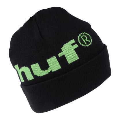 The HUF 98 Logo Beanie Hat in black is made of a soft acrylic yarn and is double layered to keep you warm during winter. The HUF logo is woven in the crown of the beanie. The wearer can choose to wear this with a folded cuff or without for a longer oversized look.