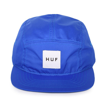 This is the HUF Hexagon 5 Panel Cap in blue. The very light cap is made of 100% nylon and features a HUF patch on the front. There is a flat brim and an adjustable strap to fit most sizes comfortably. An ideal cap for both rain and sun!