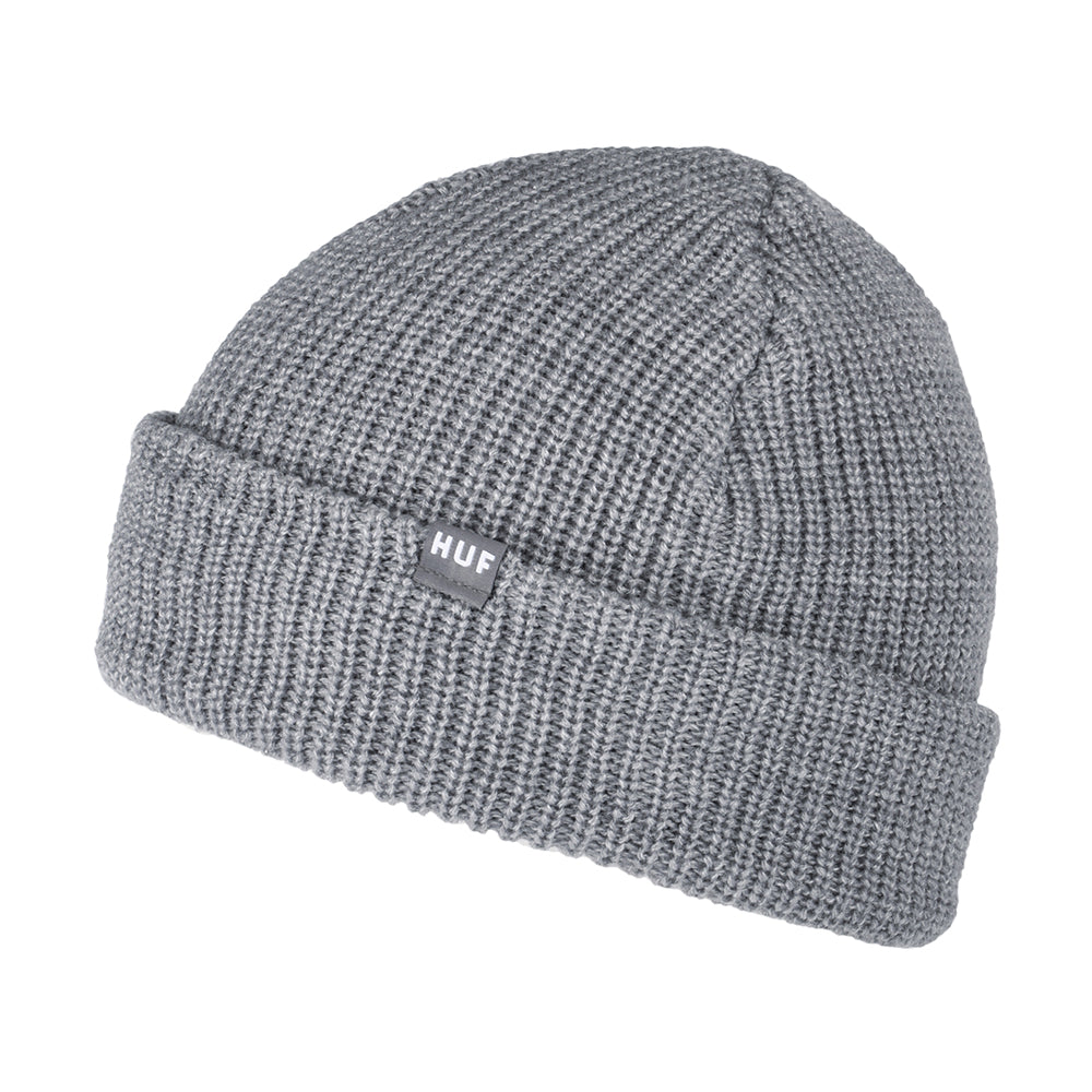 The Usual fisherman beanie hat in grey is a great winter hat from HUF. The hat is a dual layered beanie with a rolled up cuff. The cuff can also be rolled down for a slouchy look. A HUF tag is sewn onto the edge of the cuff. This would be a great addition to any winter wardrobe!