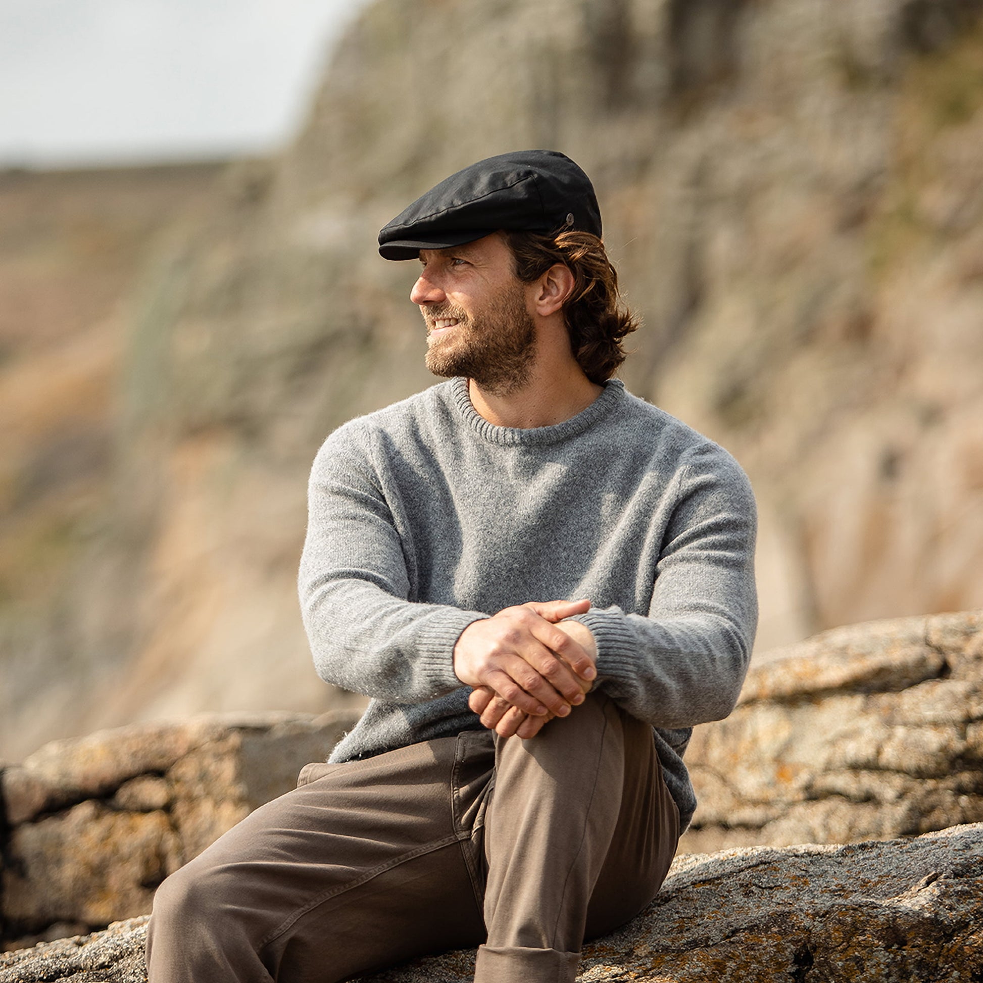 This is the British Millerain Waxed Cotton Flat Cap from Jaxon & James in black. This great cap unites style and functionality with its classic flat cap cut and the water and wind resistant waxed cotton material. British Millerain was established in 1880 and has continuously been revolutionizing organic performance fabrics, this oil-based waxed cotton offers superior protection from harsh winds and pouring rain. The cap has a quilted satin lining and a grosgrain sweatband for great comfort. On the side is a small Jaxon & James pin featured. The visor is attached to the crown with a single press stud.