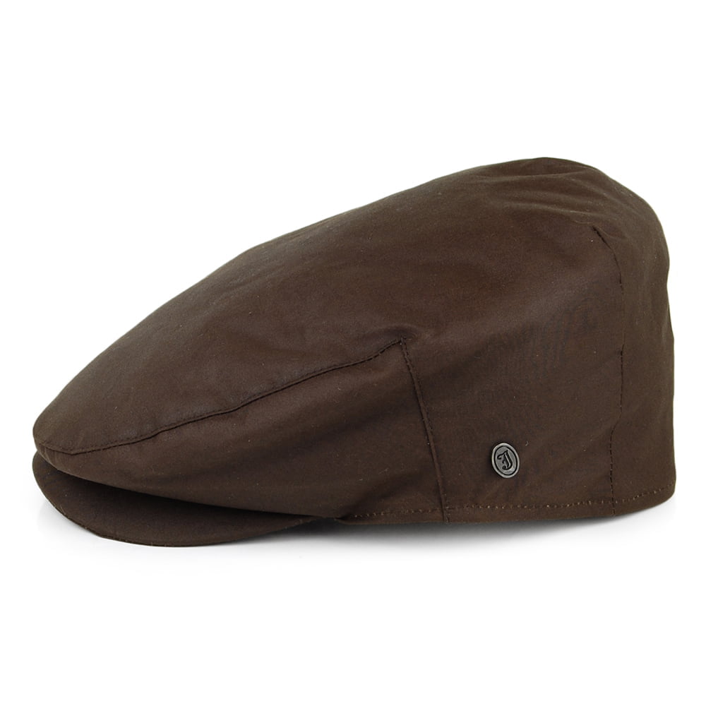 This is the British Millerain Waxed Cotton Flat Cap from Jaxon & James in brown. This great cap unites style and functionality with its classic flat cap cut and the water and wind resistant waxed cotton material. British Millerain was established in 1880 and has continuously been revolutionizing organic performance fabrics, this oil-based waxed cotton offers superior protection from harsh winds and pouring rain. The cap has a quilted satin lining and a grosgrain sweatband for great comfort. On the side is a small Jaxon & James pin featured. The visor is attached to the crown with a single press stud.