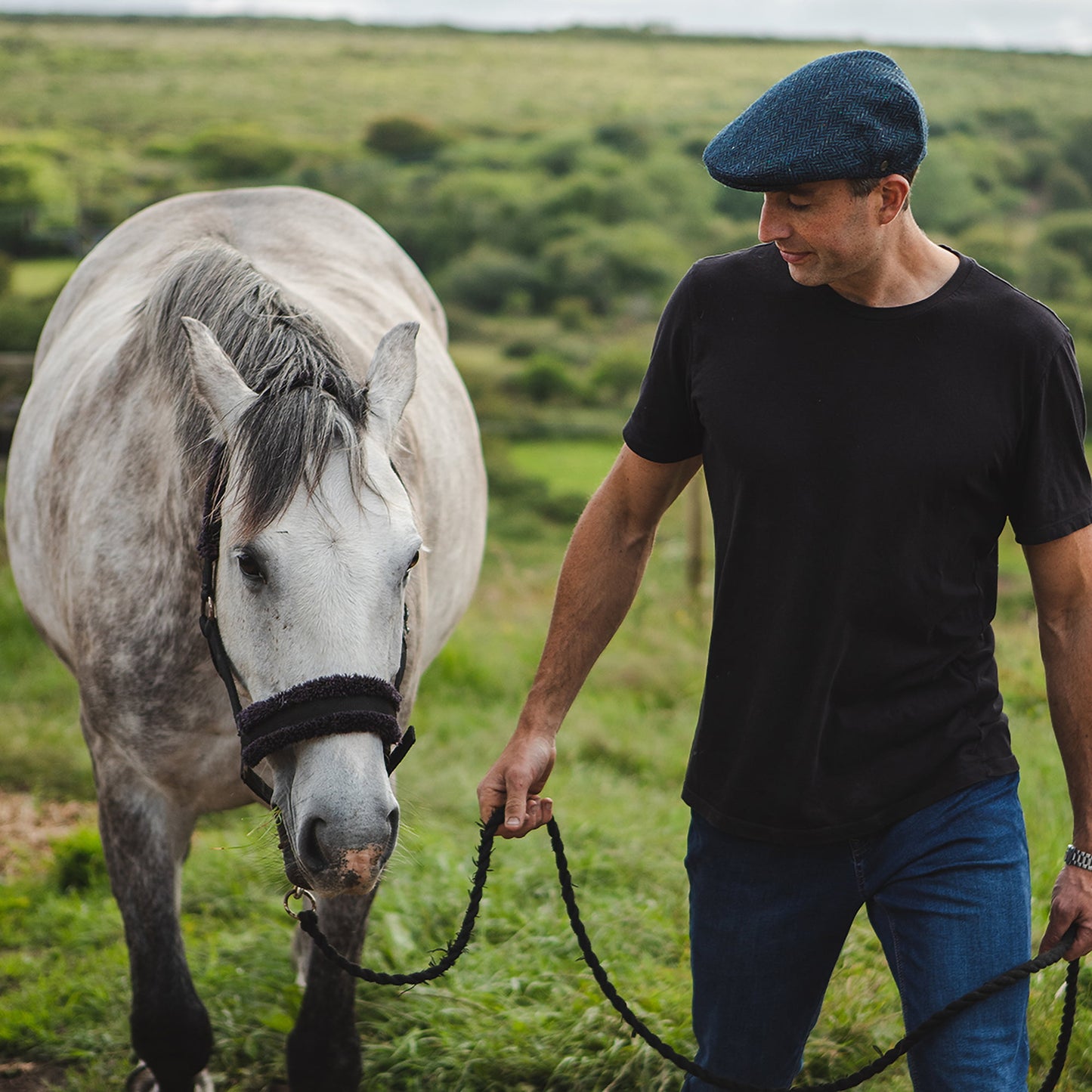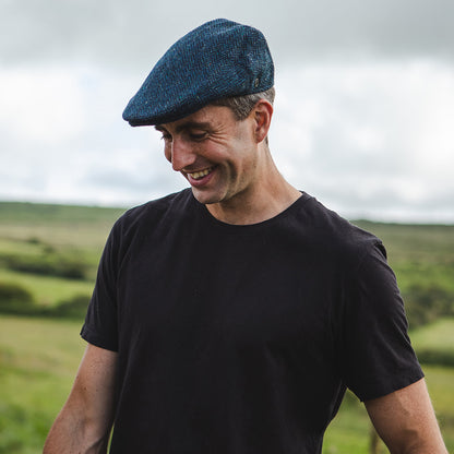 This is the Brooklyn flat cap from Jaxon & James. This navy blue herringbone cap features flecks of other colours running through out the cap giving it a unique style. The cap is made of a soft and warm wool, poly blend and has a quilted satin lining. The sweatband on the inside is grosgrain and there is a Jaxon & James side pin.
