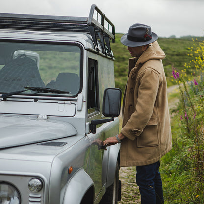 This grey Jaxon & James Crushable C-Crown Wool Felt Fedora is both dressy and practical. The back part of the crease at the top of the crown forms a big letter "C", therefore C-crown style fedora. This hat is crushable and water resistant. The hat has a snap brim, which means it can be worn up or down. You won't be able to find a classic look anywhere else.