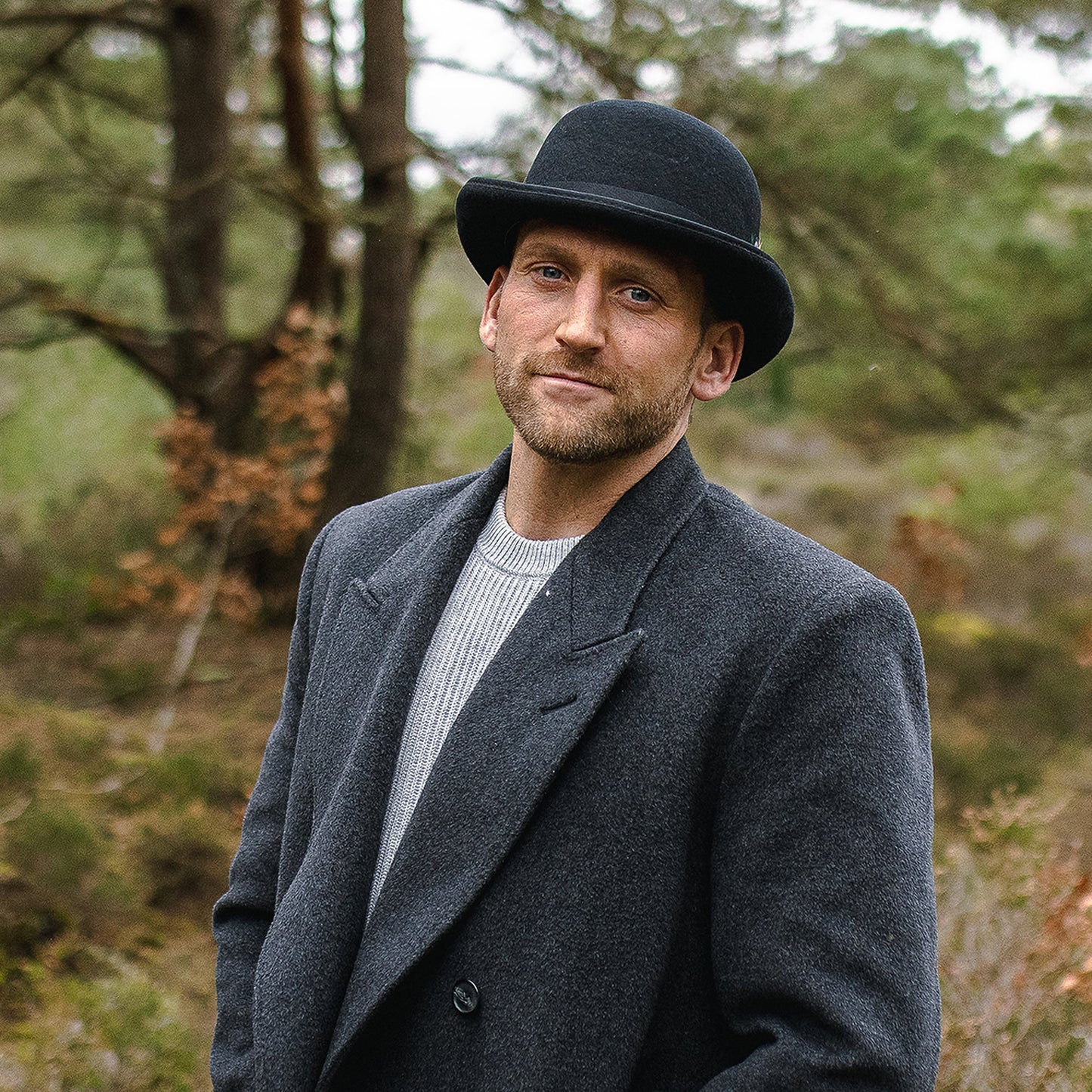We don't think there is a better wool felt bowler (or derby) in black out there! This style was created in 1850 as a hard hat for horseback riding while patrolling a game reserve by an English warden. In that tradition, this black Jaxon & James version of the bowler is a little stiffer than its competitors. And in true English Style, a little shorter than the later American versions. The 100% wool felt quality is impressive and the hat comes fully lined with the Jaxon & James logo in the tips. The hat is trimmed with a grosgrain ribbon with a bow finish and side feather. The brim's edge in bound in grosgrain. For more info on bowlers see our info page on the Bowler in our Iconic Hats section.