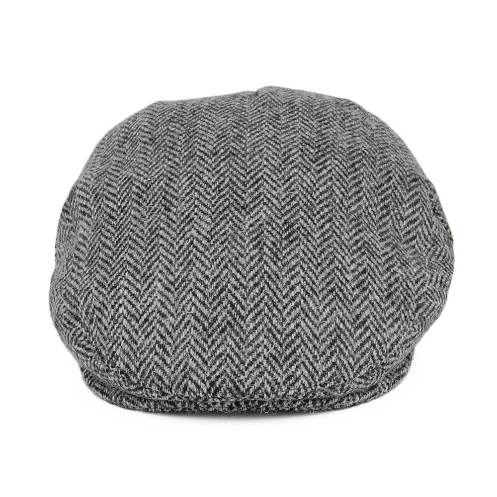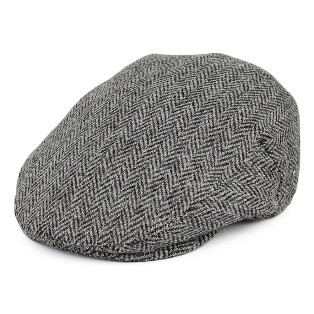 Jaxon & James HARRIS TWEED Herringbone Kinloch Flat Cap - Black-Grey