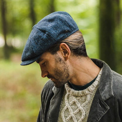 Inspired by the magical landscapes and history of the Isle of Skye this newsboy cap is distinctly Scottish. The HARRIS TWEED Fabric is a beautiful Blue-Black herringbone reminiscent of a winter day contrasted by a blue sky, or a crystal clear Loch with a dash of peat! Scenes found only in Scotland (Much like HARRIS TWEED!).
