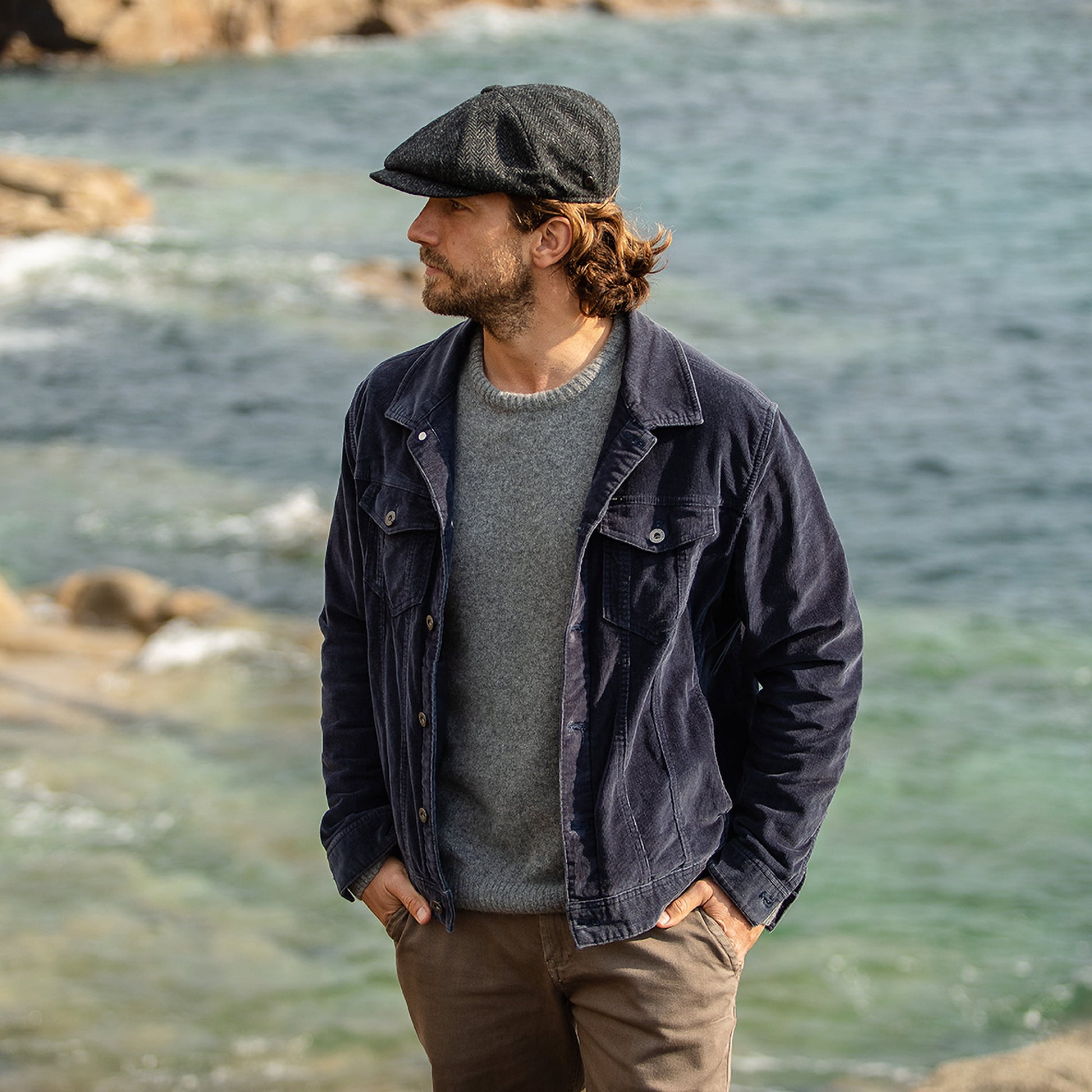The Black-Charcoal colour is reminiscent of peat, the distinct ingredient in the Islay Whisky of the Inner Hebrides. Now take yourself to Taransay, located in the Outer Hebrides, a largely uninhabited island, imagine the solitude, picture a warm fire, a glass of Islay Whisky (your preferred brand), a good book and this beautiful Newsboy Cap keeping your head warm.