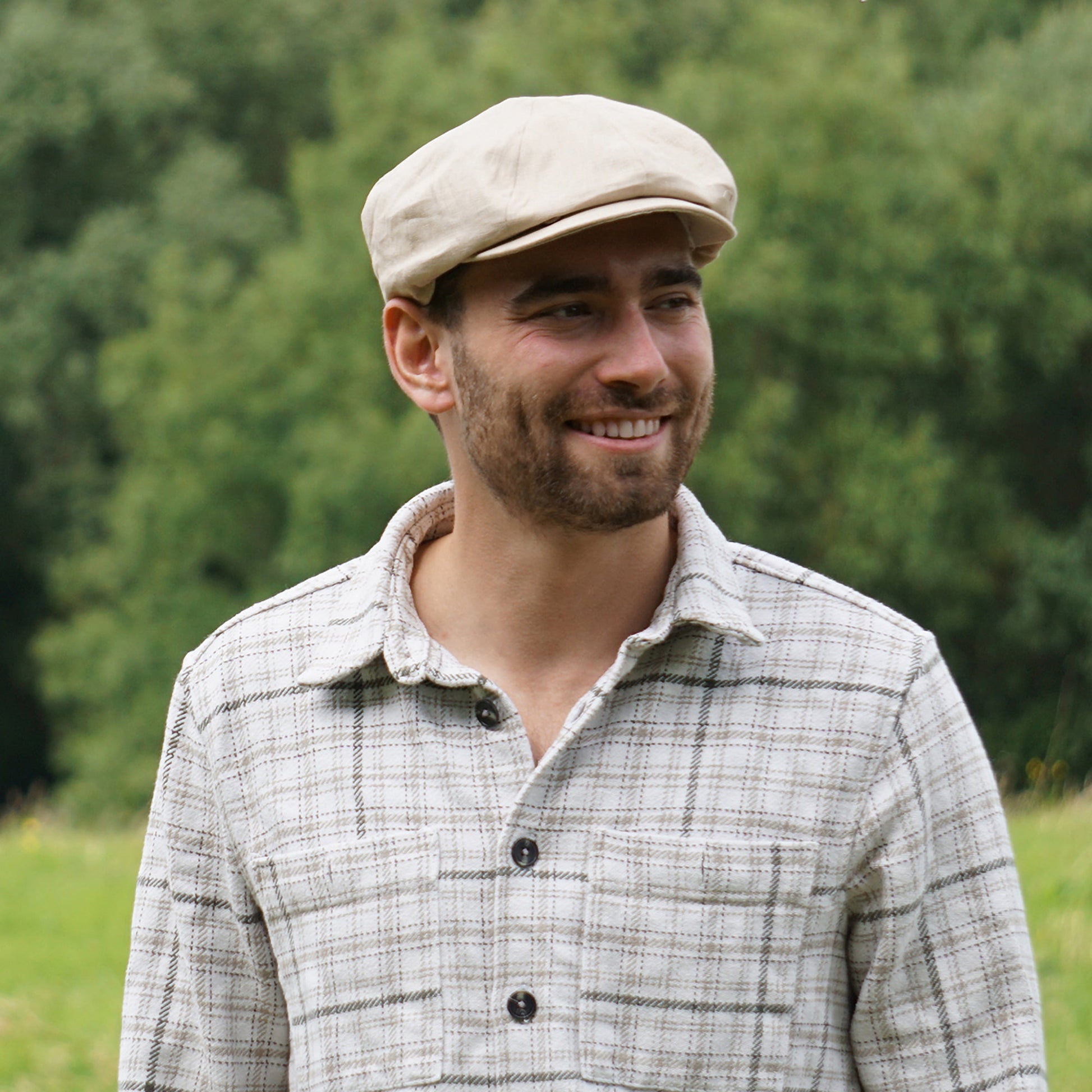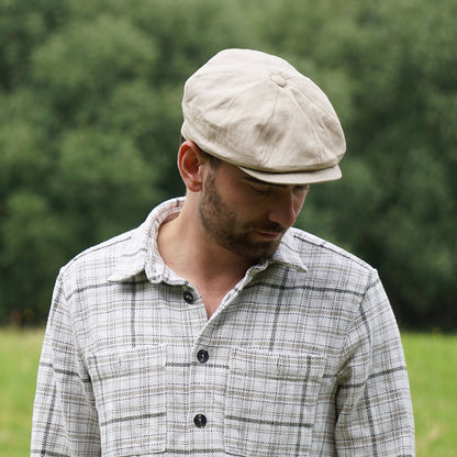The Jaxon & James Linen Newsboy Cap in natural is a lightweight style ideal for the warmer days. This 100% linen flat cap comes with a double snap brim to maintain shape, a grosgrain sweatband, lining and Jaxon & James side pin.