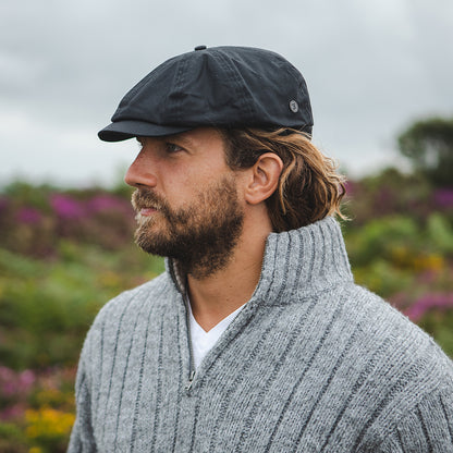 The Jaxon & James Oilcloth Newsboy in black is a classic 8/4 cap made from 100% cotton and features a double snap bill/visor. The inside is completely quilted in a satin lining which adds extra insulation and the oilcloth exterior makes it the perfect hat for a rainy day.