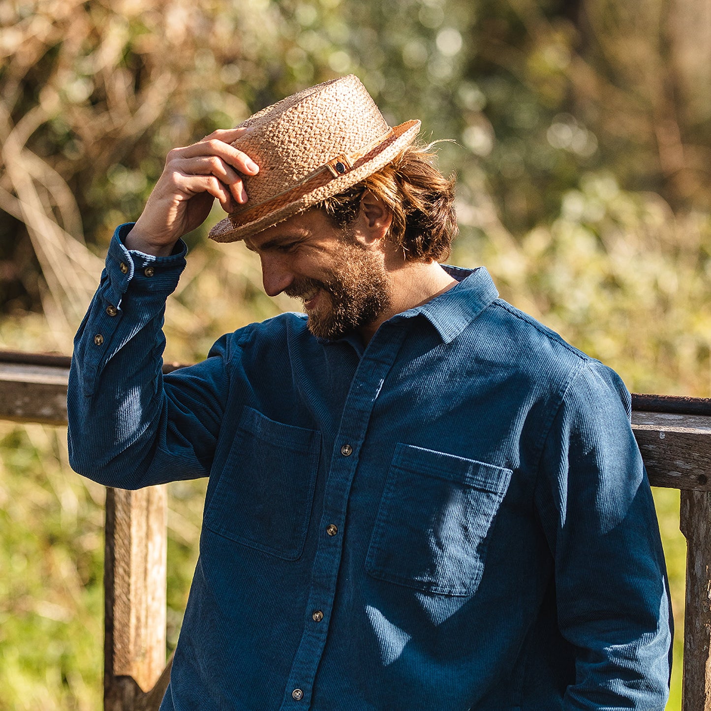 The Diamond Crown from Jaxon & James is a phenomenal pork pie made of tough, durable raffia straw. The hat has an elasticized terrycloth sweatband and is unlined for excellent breathability. This great looking straw pork pie is finished with a natural cotton and raffia hatband.