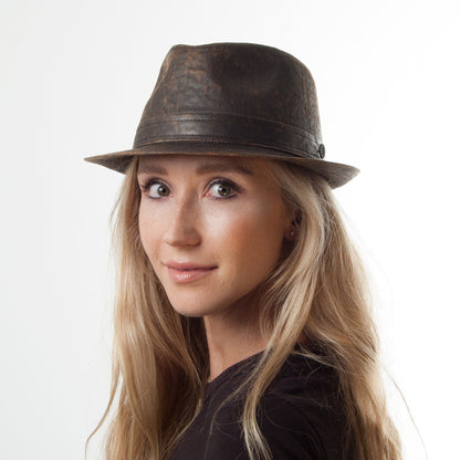 Jaxon & James Weathered Cotton Trilby Hat - Brown