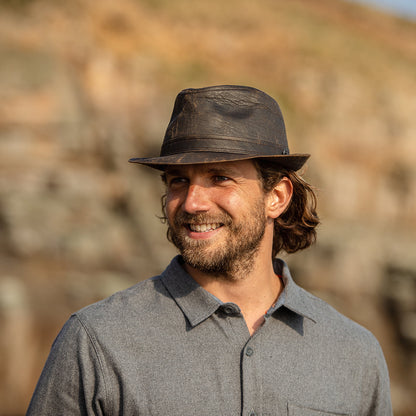 Don't miss out on the brown Weathered Cotton Trilby by Jaxon & James Hats. This hat has a used worn in look to it and is fully lined in cotton for ultimate comfort. The brim measures 4cm and the crown height is 9.5cm and it is made out of 65% cotton and 35% terylene.
