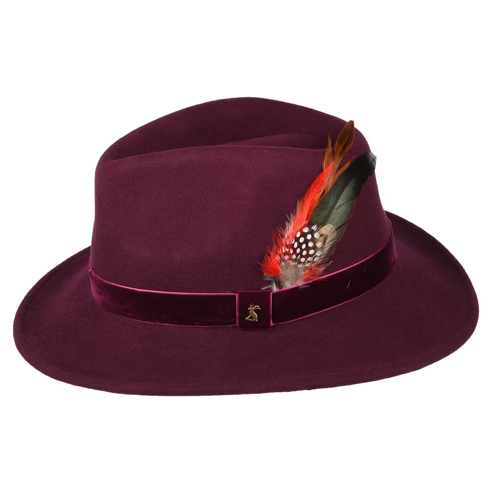 Joules Hats Felt Fedora Hat with Velvet Band - Oxblood
