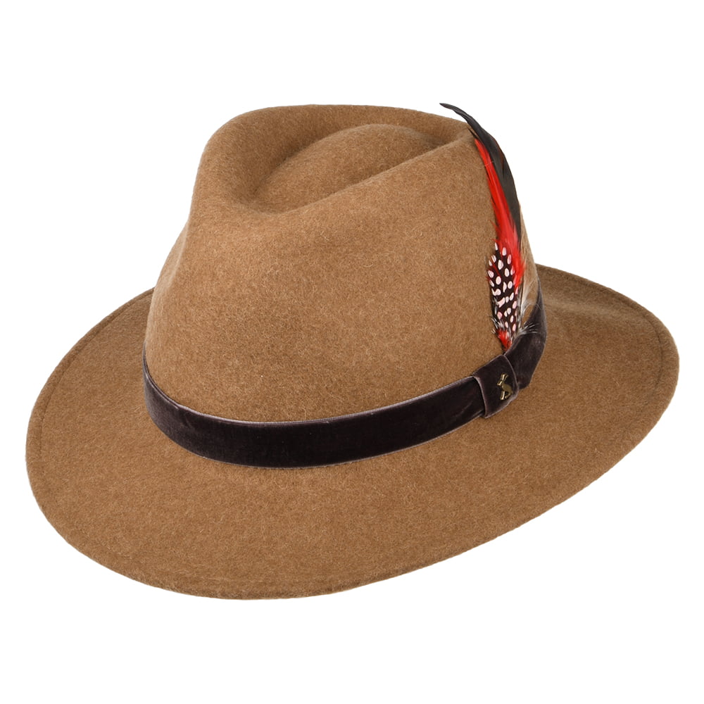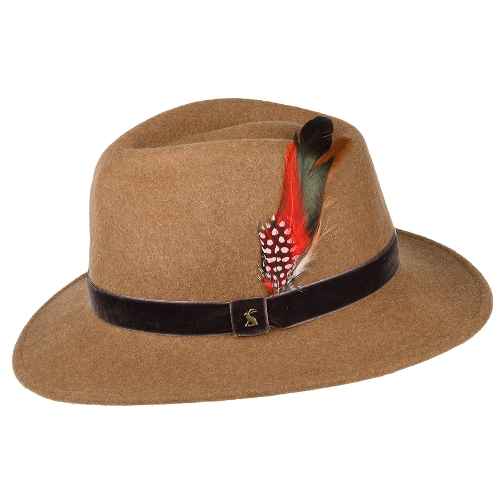 Joules Hats Felt Fedora Hat with Velvet Band - Tan