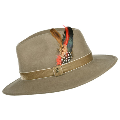Joules Hats Wool Felt XXI Fedora Hat with Velvet Band - Khaki