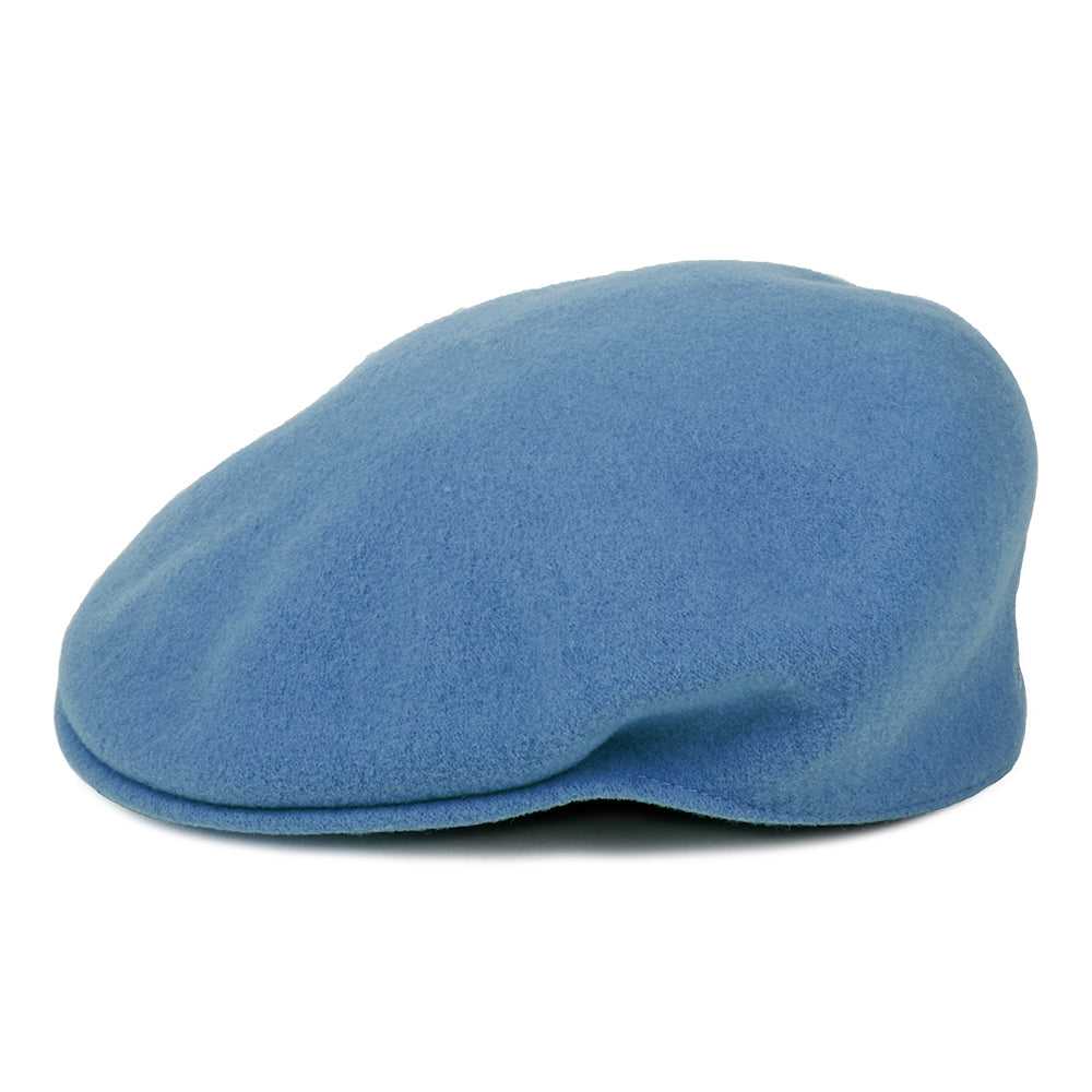 This Kangol classic flat cap in denim blue is known as the 504 and always looks great. The 504 wool flat cap is warm, breathable and durable. The brim is sewn to the crown and can also be curved for a better fitting cap. The Kangol kangaroo logo is embroidered at the back of the cap.