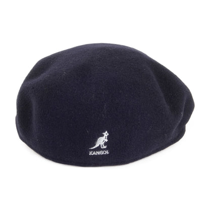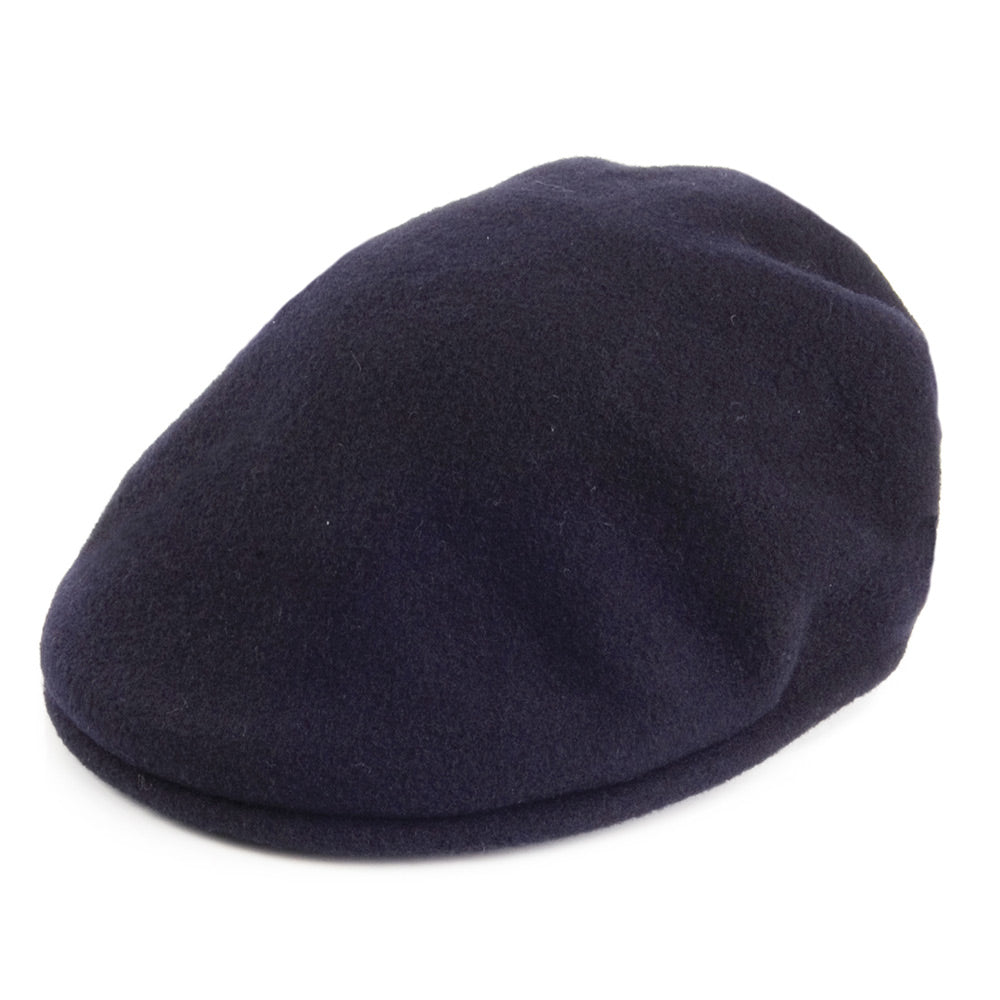 This Kangol classic flat cap in navy blue is known as the 504 and always looks great. The 504 wool flat cap is warm, breathable and durable. The brim is sewn to the crown and can also be curved for a better fitting cap. The Kangol kangaroo logo is embroidered at the back of the cap.