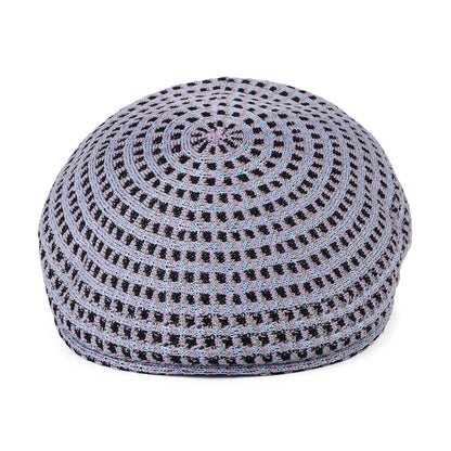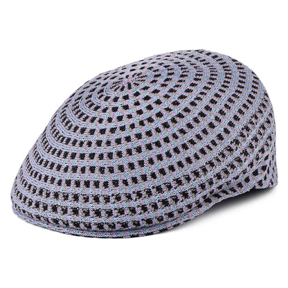 The Geo Board 504 Flat Cap in lavender from Kangol is a 4 color micro geometric all over jacquard knit made with their Tropic and recycled polyester yarns. The pattern gives the cap a bright and retro feel while the ventilation rows will keep you cool in the summer. The cap is finished with the classic Kangol kangaroo logo embroidered at the back.