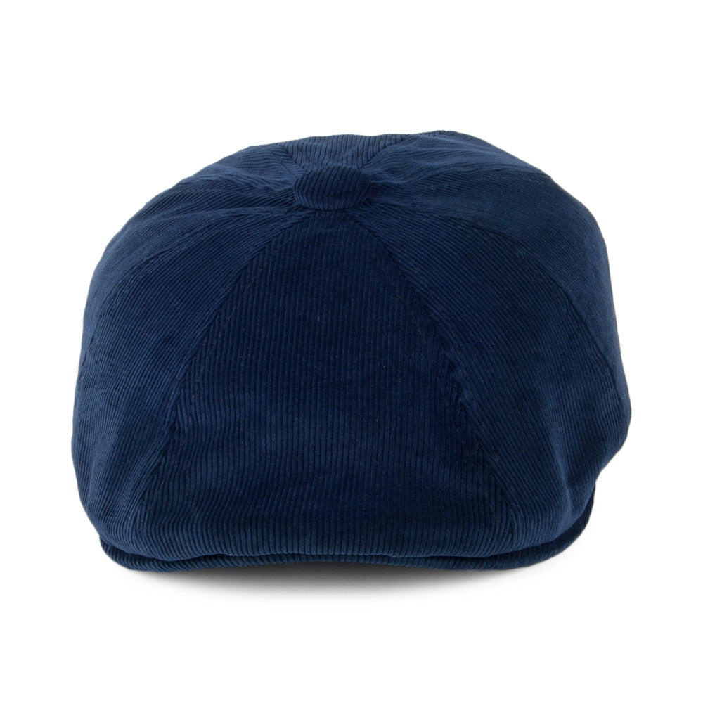 This is the Kangol Hawker Corduroy Newsboy Cap in navy blue. This 8 panelled cap is made of a comfortable cotton corduroy and features a sewn down brim and the Kangol logo and wordmark at the back of the cap.