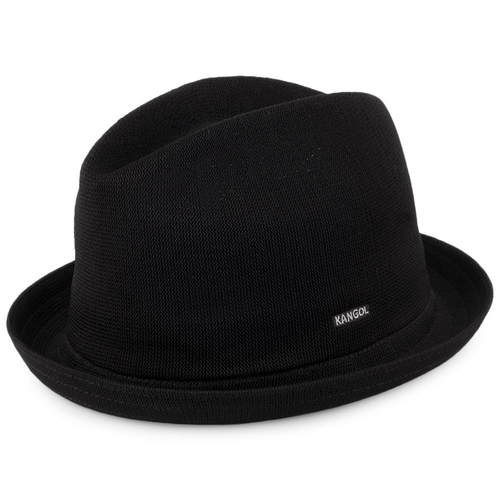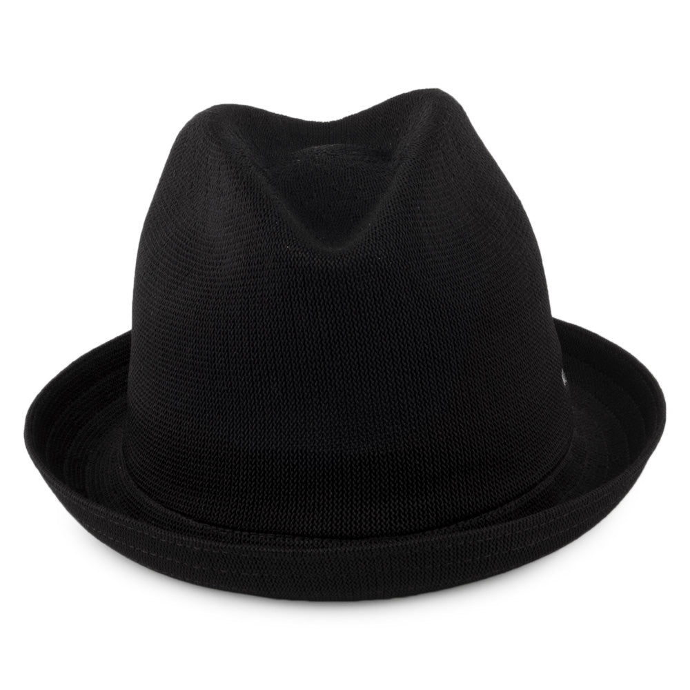 The Kangol Tropic Player Stingy Brim in black is a great shape for the those who are avid fans of trilby hats. Made from the same polyester blend fabric, known as the Tropic material, this cap is lightweight and durable. The centre pinch crown is 10cm high; and the 5cm wide stitched stingy brim can be flipped up or down. The 'KANGOL' word logo is embroidered upon the base of the crown on the left hand side.