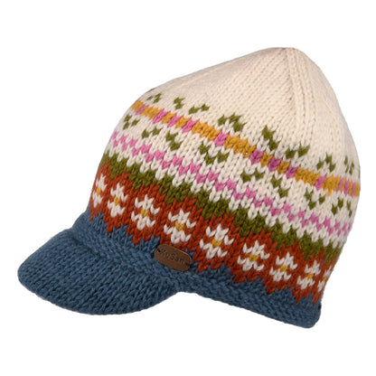 Kusan Brooklyn Fair Isle Peaked Beanie Hat - Cream-Blue