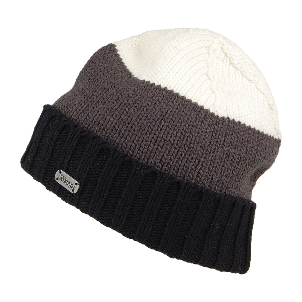Kusan Merino Floppy Beanie Hat - Black-Grey