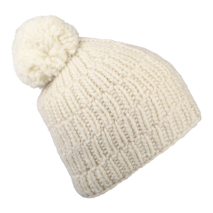 Kusan Moss Yarn Rib Cable Bobble Hat - Cream