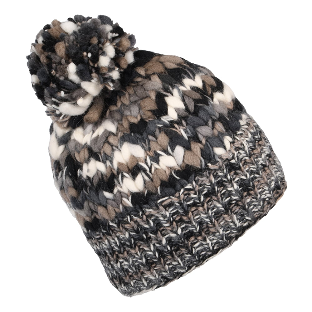 Kusan Uneven Yarn Bobble Hat - Black-White