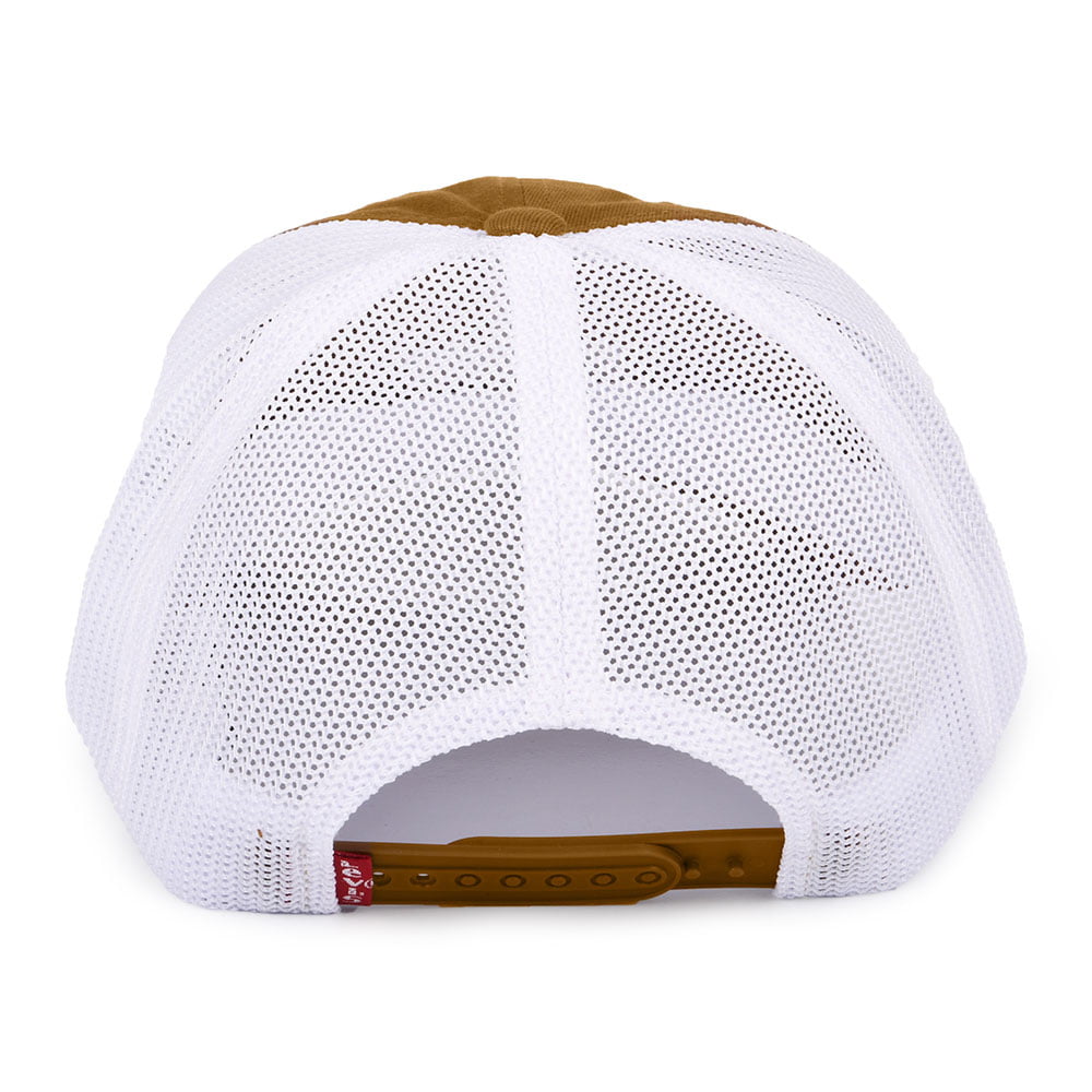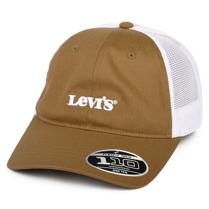 Here is the Levi's Hats Vintage Modern Trucker Cap in khaki. A Levi's logo is embroidered on the front of the unstructured crown and the back has a soft mesh to encourage ventilation. Inside is an elasticized Flexfit sweatband for additional comfort. An adjustable snap at the back helps the wearer find their perfect size.