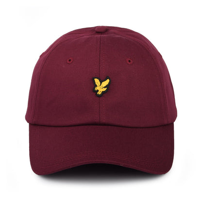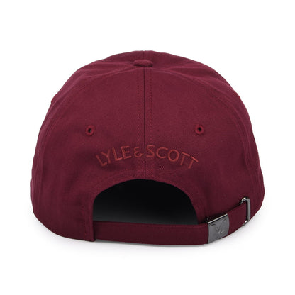 The Lyle & Scott Vintage Baseball Cap in burgundy is a stunning new addition to the brand's cap line. This style is made of 100% organic cotton and features an unstructured crown and a curved brim. An embroidered Lyle & Scott logo is sewn onto the front and the name of the brand is embroidered at the back. The adjustable strap at the back also features a metal clasp with the Lyle & Scott logo embossed.