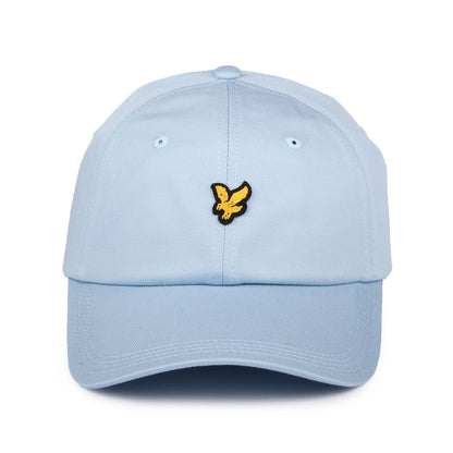 The Lyle & Scott Vintage Baseball Cap in sky blue is a stunning new addition to the brand's cap line. This style is made of 100% organic cotton and features an unstructured crown and a curved brim. An embroidered Lyle & Scott logo is sewn onto the front and the name of the brand is embroidered at the back. The adjustable strap at the back also features a metal clasp with the Lyle & Scott logo embossed.