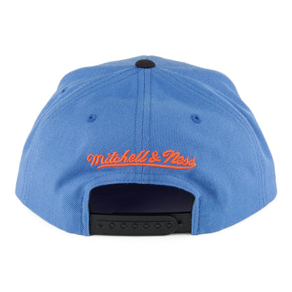 This snapback from Mitchell & Ness is called the Current Throwback, the style takes the current team logo and uses colours that the team had used in the past. This Cleveland Cavaliers hat features the team logo embroidered on the front of a light blue cap with a black brim. The Mitchell & Ness logo is embroidered at the back above the adjustable snapback.