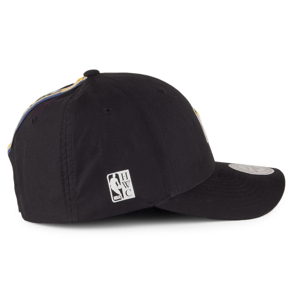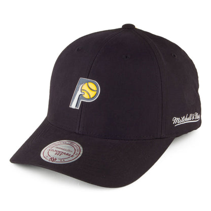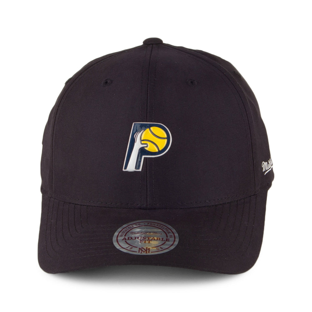 The Mitchell & Ness Indiana Pacers Taped Snapback Cap in black is sure to be a fan favourite. This baseball cap features a structured front panel and pre-curved brim. The team logo is on the front, Mitchell & Ness on the side, Hard Wood Court logo on the right side, and a unique pattern at the back leading to the adjustable snap.
