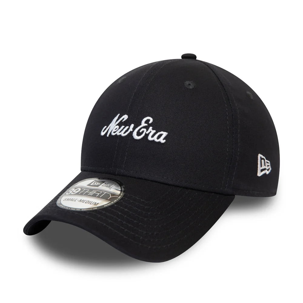 Here is the New Era 39THIRTY Cursive Logo Baseball Cap in navy blue. The hat features a elegant New Era cursive logo on the front of the hat. The New Era flag is embroidered on the side of the hat. As its a 39THIRTY, the hat has a pre-curved brim and a stretch sweatband for a great fit.