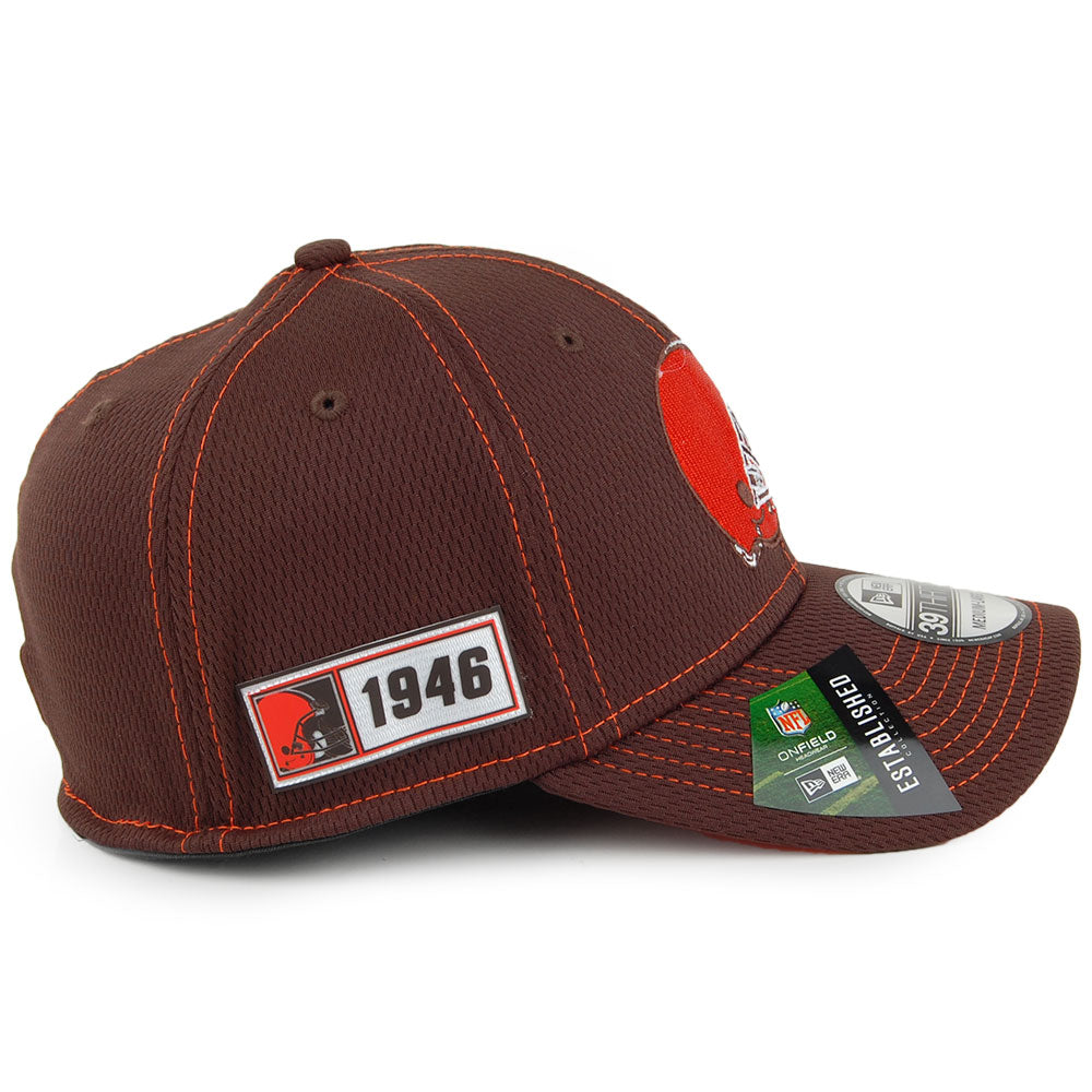 This is the 39THIRTY Cleveland Browns Baseball Cap NFL Onfield Road in brown from New Era. This great cap has the team logo embroidered on the front. On the left side is the New Era logo embroidered and on the right side is a logo with the foundation year of the team featured. At the back is a special NFL logo celebrating 100 years of the NFL. In the inside is an elastic sweatband for a comfortable fit.